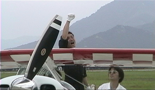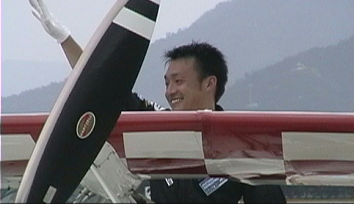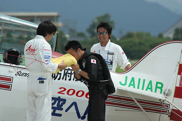 無事ショーを終えて喜ぶサニー、素晴らしいショーを有り難う 機体停止位置に移動して録りました 人が多くビデオで撮影