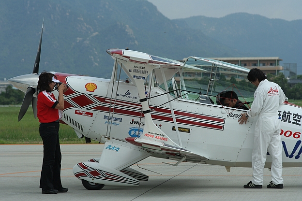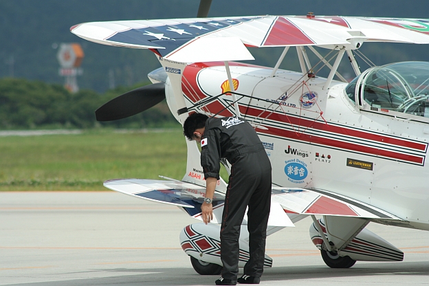 フライト前に機体のチェックをするサニーさん
