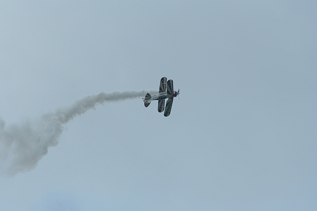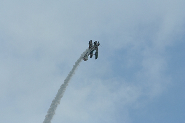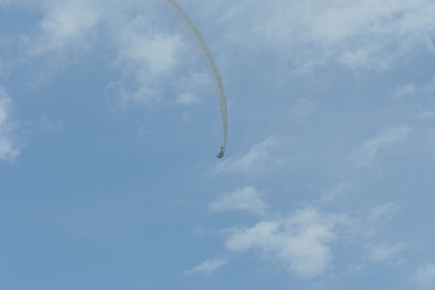 曇り空でも少し晴れ間の見える状況の中 元気に飛ぶピッツ、久々のショーを体感