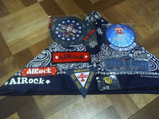 バンダナと各種パッチ・ピンバッチ パッチの種類は豊富です その他にTシャツ・ポロシャツ・帽子各種